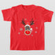 Funny design of a tender christmas reindeer Rudolf with christmas hat and various snowflakes background. Ideal for Christmas holidays