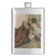 The product is a good size and came exactly as it was pictured. The lid is not attached to the flask, which could be dangerous on drunken nights... The print came out surprisingly well and looks very sharp. Would definitely recommend.