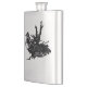 The product is a good size and came exactly as it was pictured. The lid is not attached to the flask, which could be dangerous on drunken nights... The print came out surprisingly well and looks very sharp. Would definitely recommend.