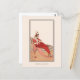 A postcard with an Art Nouveau fashion plate from 1914 by the Danish artist Gerda Wegener (1886-1940). An illustration which has been digitally enhanced, portraying a woman in a sumptuous red ruffled dress, reclining on a chaise lounge with an air of sophistication. She is engrossed in the reading of a love letter, creating a scene that captures the essence of romance and femininity.