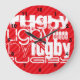 Cool, white rugby football, sport word cloud text pattern template on red, scarlet red diagonal stripes, striped background! Great gift for kids, teenager, teens, or adults; boy! Trendy, cute design with different fun grunge white fonts!