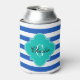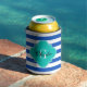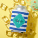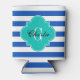 Classic Preppy Horizontal Rugby Stripes, Name Initial Monogram in a Teal Quatrefoil Frame