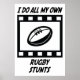 I Do All My Own Rugby Stunts. If Rugby is your hobby, occupation, or obsession, show it with great Rugby t-shirts, mugs, stickers, and more. They're also great gifts for other Rugby fans!
