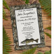 The front of this birthday card features a jumbo walleye and the fishing quote "Walleye Fishing: The Eyes Are Calling and I Must Go!". The back of this invitation features a camouflage border and all of the party details including, name, age, date, party details and more. There is also a walleye on the back of the shirt. This a great birthday invitation for the avid fisherman who loves to fish.