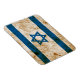 The flag of Israel is made to look aged and rugged. Rough textures cover the flag giving this magnet a grungy feel. This ragged Israeli flag is a fun and stylish way to show your patriotism.