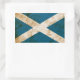 The flag of Scotland is made to look aged and rugged. Rough textures cover the flag giving this sticker a grungy feel. This ragged Scottish flag is a fun and stylish way to show your patriotism.