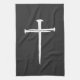 Rugged simple design: three white nails interlaced to make the Christian Cross.