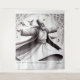 At the heart of this artistry is a mesmerising depiction of a Sufi Dervish dancer in the throes of an ecstatic whirl. The dancer, draped in pristine white robes, is captured in a moment of pure transcendence. Their arms gracefully extend, and their eyes are closed in deep meditation, exuding an aura of serenity and euphoria.