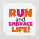If you love to run, run 5Ks, 10Ks, half marathons, or marathons, you'll love this colourful text design in orange and hot pink that reads Run and Embrace Life! Run and Embrace Life T-shirts, hoodies, magnets, buttons, cards, stickers, key chains, and lots of other items for runners who love a bright, colourful running design!
