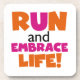 If you love to run, run 5Ks, 10Ks, half marathons, or marathons, you'll love this colourful text design in orange and hot pink that reads Run and Embrace Life! Run and Embrace Life T-shirts, hoodies, magnets, buttons, cards, stickers, key chains, and lots of other items for runners who love a bright, colourful running design!