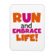 If you love to run, run 5Ks, 10Ks, half marathons, or marathons, you'll love this colourful text design in orange and hot pink that reads Run and Embrace Life! Run and Embrace Life T-shirts, hoodies, magnets, buttons, cards, stickers, key chains, and lots of other items for runners who love a bright, colourful running design!