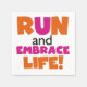 If you love to run, run 5Ks, 10Ks, half marathons, or marathons, you'll love this colourful text design in orange and hot pink that reads Run and Embrace Life! Run and Embrace Life T-shirts, hoodies, magnets, buttons, cards, stickers, key chains, and lots of other items for runners who love a bright, colourful running design!