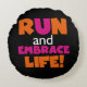 Run and Embrace Life Orange Pink Text Round Cushion
