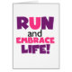 If you love to run, run 5Ks, 10Ks, half marathons, or marathons, you'll love this colourful text design in purple and pink that reads Run and Embrace Life! Run and Embrace life T-shirts, mugs, bags, cards, stickers, key chains, mousepads, iPhone cases, magnets, and much more!