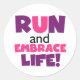 Run Embrace Life Purple Pink Classic Round Sticker