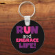 If you love to run, run 5Ks, 10Ks, half marathons, or marathons, you'll love this colourful text design in purple and pink that reads Run and Embrace Life!