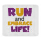 If you love to run, run 5Ks, 10Ks, half marathons, or marathons, you'll love this colourful text design in purple and yellow that reads Run and Embrace Life! Run and Embrace Life T-shirts, hoodies, magnets, buttons, cards, stickers, key chains, and lots of other items for runners who love a bright, colourful running design!