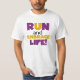 If you love to run, run 5Ks, 10Ks, half marathons, or marathons, you'll love this colourful text design in purple and yellow that reads Run and Embrace Life! Run and Embrace Life T-shirts, hoodies, magnets, buttons, cards, stickers, key chains, and lots of other items for runners who love a bright, colourful running design!