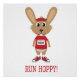 Run Hoppy! Cute happy runner rabbit in red shirt is ready to race
