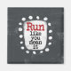 A cute typographic design that says "Run Like You Mean It". It features black and red text on a white rectangle with funky, playful white dots surrounding it, all on a grey background.