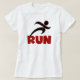 Running T-shirts, mugs, bags, keepsakes, tank tops, hoodies, and other apparel and gifts for runners featuring a black silhouette runner and red text that reads RUN. These RUN apparel and gift items are great for anyone training for a 5K, anyone who just loves to run, or someone who has already accomplished several marathons!