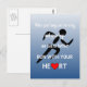 You have reached that moment when your legs are in agony, your body screams "Stop!" but your brain says "No! The race isn't over yet!" That's the moment to dig deep and run from your heart. The inspirational text is in white, and there is a red heart and the silhouette of a runner on a deep blue background.