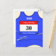 Customisable blue running vest postcard, for birthday wishes, good luck or just recording a time achieved at a running or athletics event or meet.