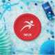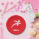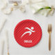 Cool, colourful runner, running, run, marathon runner, sprinter, long distance, track coach, sports design on red, scarlet red diagonal stripes pattern. Perfect gift for baby, toddler, kids, children, teens, or adults! Personalised the design by adding a child's name or custom text with athletic, sporty look sports white font. Visit our store, Birthday Party House, for more great customisable boy and girl products!