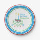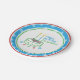 Cute and Personalised Running Shoe sports theme party supplies. A Paper Plate to double as colourful Birthday Decor. Add a Name for Unique tableware.
