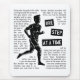 A design and writeup that uses the designer's thoughts on comparing running towards the endpoint to that of going after goals in life, as a backdrop to the striking black silhouette with negative space as outlines to form the image of a fit and lean male runner in shorts. Great as a motivational and encouragement design for someone to have the tenacity and perseverance to take things one step at a time towards their goals.
