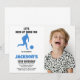 Running Blue Soccer Birthday Invitations w photo
