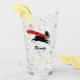 Enjoy a pint of your favourite cold beverage out of this unique 16 oz drinking glass. Running Boston Terrier cartoon dog wearing a red scarf with custom text for your name or slogan. Makes a fun personalised holiday gift for Boston lovers. Visit Jenn's Doodle World for more custom drinkware and dog breed designs.