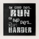 On Good Days Run - On Bad Days Run Harder motivational running quote for long distance, full or half-marathon runner. Proper mindset is essential to reach our race goals. >> Gift idea to motivate runners training for 5k, 10K, Cross Country, Track and Field, Trail runs, or marathons. >> Customisable artwork. Add YOUR OWN personal name or custom message. Click "Personalise" and create your own custom text, add a background shape, graphic, etc. to make your final design.