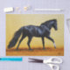 Painting of a beautiful black stallion with a long flowing tail galloping across a grassy field. Realistic artwork created from an original oil painting by equine and wildlife artist Crista S. Forest.