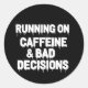 Running on Caffeine and Bad Decisions Funny Coffee Classic Round Sticker