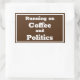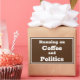Funny political saying: Running on Coffee and Politics. It captures the idea that coffee and political awareness are essential to our existence, providing sustenance and driving our actions.