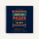 Our cute sketch book design features a funny saying on a navy blue background which you can easily change by using our design tool. Send us a message if you're unsure of how to do this. "Running out of Pages in my Passport" is depicted on the front with airport stamps and a city skyline. Personalise with your name by clicking the "Personalise" button.