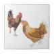 This colourful tile has my design of a running cockerel towards a brown strutting hen, with a plain white background.