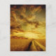 Rural dirt road through the field postcard