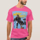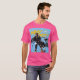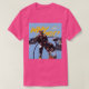 I give wanted to give this a 4 instead of a 5 because these Basic DARK T0shirts run unexpectedly SLIM or Narrow. Which is great if you do not have a potbelly, but I have a paunch. It isn't the shirt's fault that I've got a beer belly. The design and shirt itself is a quality cotton shirt. The color is more of a deep purple, but still a very pretty color. The Basic DARK T-shirts run a bit SLIMMER than the Basic Ts. The neck is a fraction narrower (or seems to be narrower) also. I'm a paunchy middle-aged woman and my neck is 12 inches (31cm) thick and the neckline fell about the same as in the photo of the man, and I had the desire to tug it a bit. So if you're a thick necked man or like loose shirts, be aware these are slimmer shirts. Once I get rid of my lockdown paunch it'll look great. The shirt washed well in cold water with no apparent bleeding. We don't have a dryer, so it hung dry. Did not shrink. Love the colors and the design. The design looks smaller on my shirt than it does on the model on-line. But still, it looks good on the shirt. The printing looks as it does on the model, just the size seems fractionally smaller. Washed garment in cold water, hung dry and design appeared unaffected.