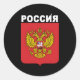 Russia In Russian Cyrillic With National Emblem Classic Round Sticker