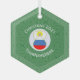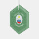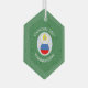 This angel is dressed in the white, blue, and red horizontal tricolor of the Flag of Russian, featured here on a hexagon shaped glass ornament for Christmas decor or the holidays. The Russian Christmas angel is found inside a white circle of squiggly squares, which is surrounded by a background of green squiggly squares. You can add your own text, or personalise with the year and a name.