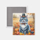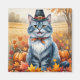 Russian Blue Cat Autumn Leaves Thanksgiving Art Magnet