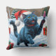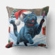 Russian Blue Cat Running Snow with Christmas Hat Cushion