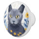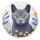 Russian Blue Cat Yellow Flowers Ceramic Knob