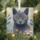 Russian Blue Cat Yellow Flowers Glass Tree Decoration