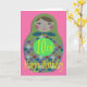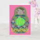 10th Birthday card with an image of a classic shaped Russian Doll with colored circles, on a pink background.