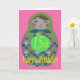 15th Birthday card with an image of a classic shaped Russian Doll with colored circles, on a pink background.