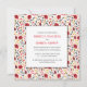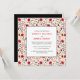 Your wedding details are framed in a white square with black borders over a red and black foliage pattern