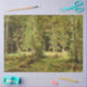 This design features a painting by the Russian artist Ivan Shishkin (1832–1898). It shows a landscape in the forests of Russia. It is a beautiful image of nature and an attractive array of greenery. The original painting was produced circa 1880.
